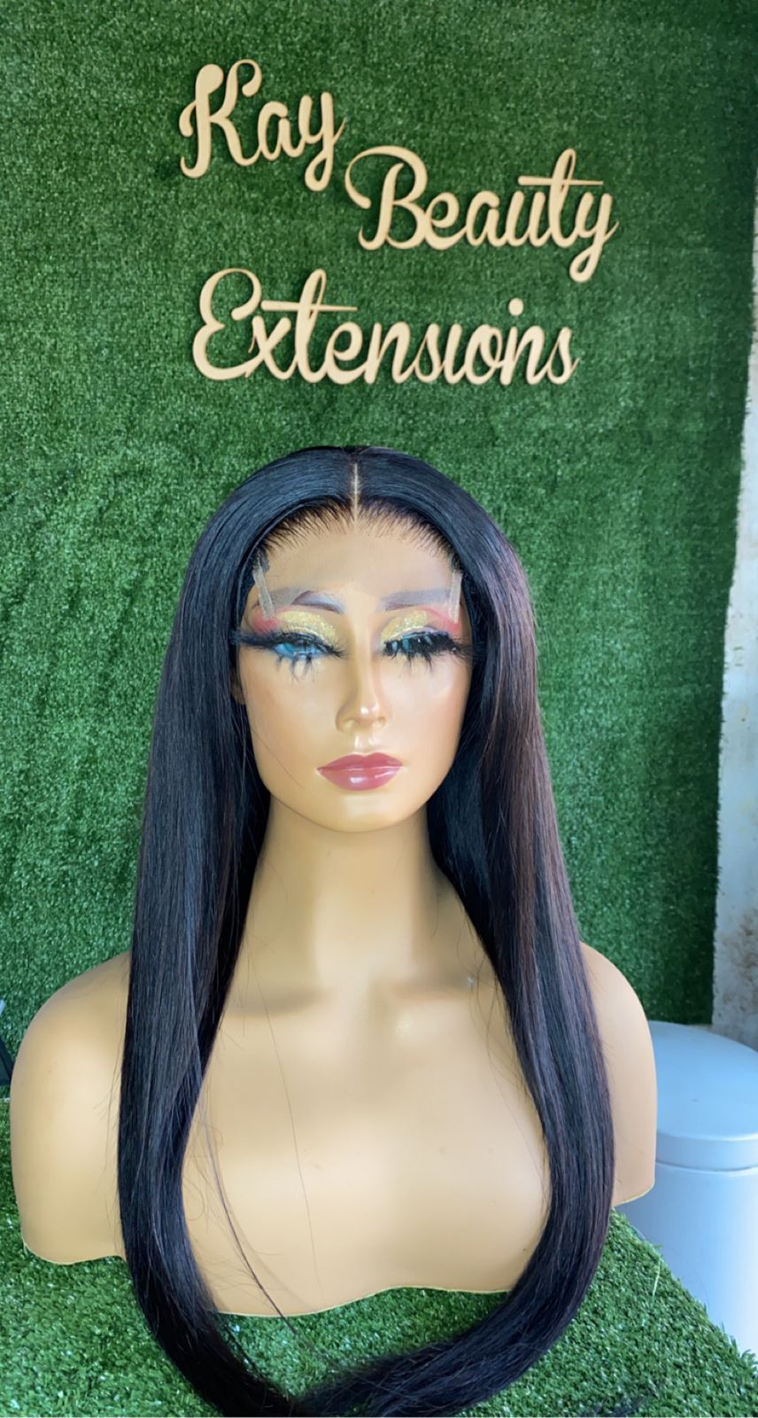 22” of luxurious raw Peruvian hair with a customized 3 way closure. The hair is super soft, silky and thick. This unit is a ready to wear unit, no glue is required when wearing it.